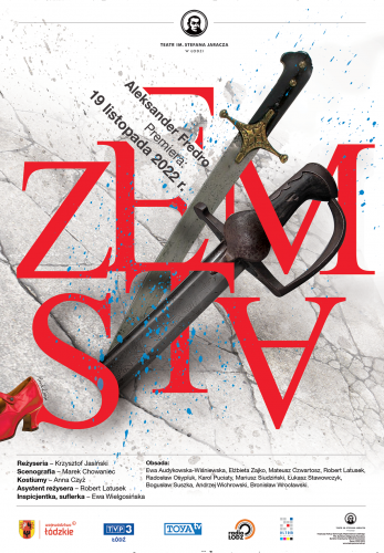"Zemsta" Aleksandra Fredry należy do klasyki polskiej literatury, wyznacza kanon komedii, jest wzorem komizmu sytuacyjnego i słownego humoru. To arcydzieło polszczyzny i jeden z najbardziej krytycznych utworów o polskości, często w szyderczy i o dziwno wciąż aktualny sposób punktujący nasze narodowe przywary i słabostki.Reżyser spektaklu Krzysztof Jasiński (dyrektor Teatru STU w Krakowie) wraca do Teatru Jaracza w Łodzi po 51 latach od czasu swojego reżyserskiego debiutu. Jak w 2022 roku zabrzmi już niemal 190-letni, genialny tekst Fredry? Czy kolejne pokolenie Raptusiewiczów i Milczków weźmie sobie do serca finał, tak bardzo dziś wszystkim potrzebny? Komedia, która nigdy się nie starzeje, z pewnością ma jeszcze sporo do powiedzenia o współczesnym świecie.