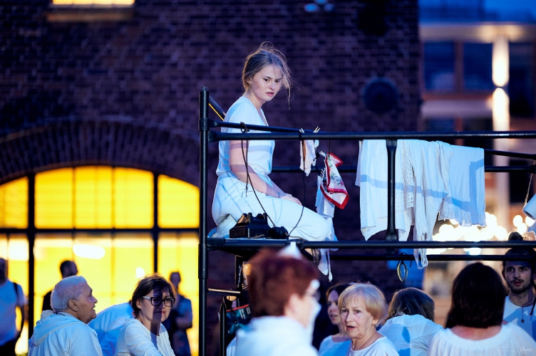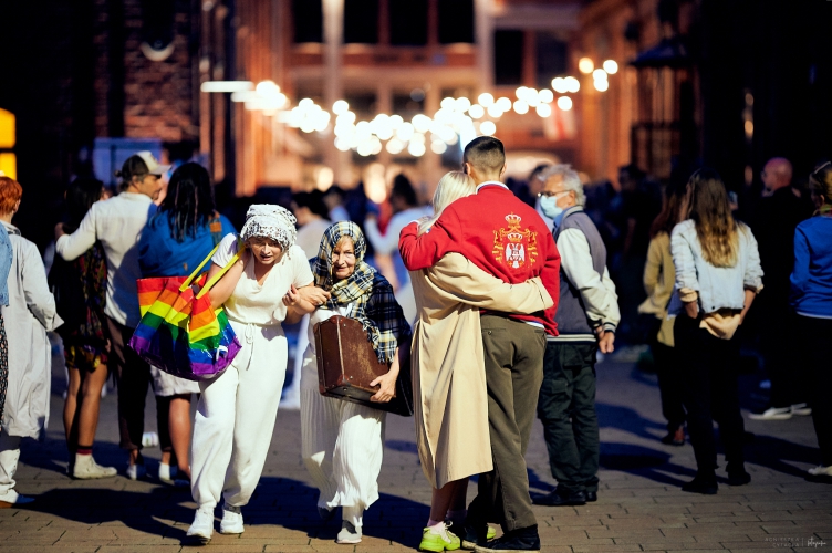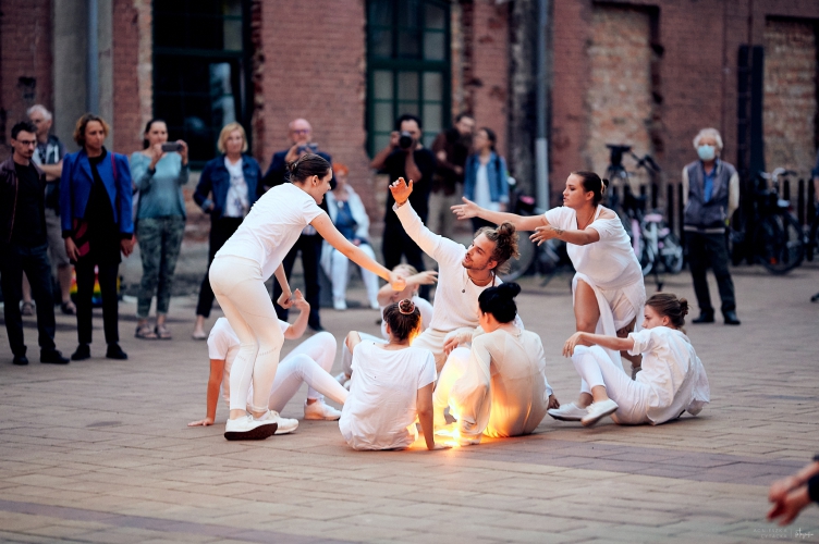 Performance zakończył się optymistycznie i wspólnotowo, tańcem, w który dali się wciągnąć także widzowie.