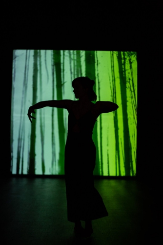 Etap 2. Po tańcu uosabiającym pewność siebie i rutynę nagle widzimy świat, w którym ziemia zaczyna pękać pod stopami. Nic już nie jest takie samo jak wczoraj. Ciało staje się niespokojne, jeszcze nie rozumie, co się dzieje, szuka utartych kolein, którymi mogłoby się poruszać. Ale one nikną, jak ścieżka zarośnięta trawą. Rozpływają się. Do głosu chce dojść to, co ukryte, wypierane, rozsadza świat iluzji i przyzwyczajeń, do których przywykliśmy. Poprzez nagłe wydarzenia, wypadki, bunt ciała, które przestaje działać tak sprawnie jak dotąd – coś próbuje zamanifestować swą obecność i za nic ma nasze przyzwyczajenia. Ciało próbuje odzyskać swój rytm, albo zbudować nowy, zintegrować się z tym, co nieuniknione. To może być tempo współczesnego miasta, do widoku którego przyklejamy się, jak dziecko do szyby, zapatrzone w świat za oknem. Aktorka ginie w przestrzeni stworzonej przez multimedialną projekcję, jednoczy się z miejską drogą, którą wciąż trzeba pokonywać od początku, dosłownie i symbolicznie. Przemiana się dokonała, co mocno akcentuje dynamika ciała – ruchy stają się bardziej wyraziste i ekspresyjne. Jednak „brama miasta” to nie krańcówka, tylko przystanek. Zatapiamy się w kolejną iluzję, a prędzej czy później nadejdzie następna przemiana. Wielokrotnie przyjdzie nam „zmieniać skórę”, tak jak symbolicznie czyni to aktorka, obnażając na chwilę swoją nagość, by – poprzez pozbycie się starego kostiumu teatralnego, przenicować go na drugą stronę, by zalśnił nowym blaskiem.