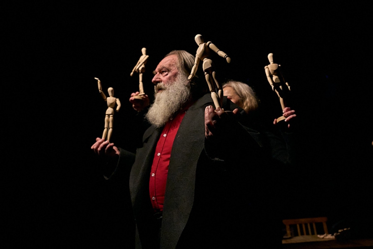 I jeszcze jeden reżyserski pomysł, który bez wątpienia przyczynił się do sukcesu spektaklu. Joanna Gerigk w autorskim przesłaniu napisała: „Ludzie przybierają maski, by pokazać na zewnątrz coś innego niż mają w środku. Chcąc jeszcze bardziej wydobyć ten temat, postanowiłam do gry aktorskiej dodać element formy – figury, lalki – symbole człowieka”. Lalki w spektaklu też grają. Niewielkie człekokształtne figurki, które zależnie od potrzeb aktorzy biorą do ręki, odrobinę animując. Lalki pomagają im w „stawaniu się” postaciami scenicznymi albo w skrywaniu za nimi poprzednich wcieleń. A kiedy trzeba, laleczki są świtą stu rycerzy Leara lub wojskami francuskimi i angielskimi w scenie bitwy poprzedzającej ostateczne rozstrzygnięcia. Niezwykle wyrazisty obraz manipulowanej czy sterowanej masy ludzkiej na mapie – na scenie świata.