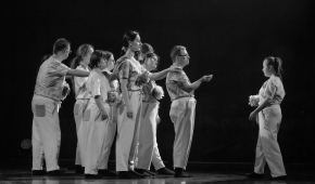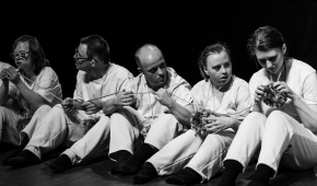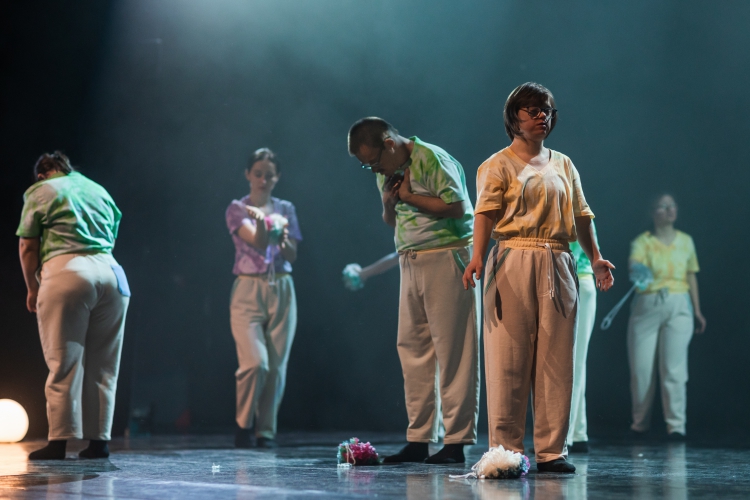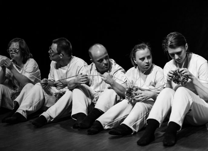 Ciekawe, że także aktorzy Teatru Smile mieli swój udział w procesie twórczym – układy choreograficzne w spektaklu składają się z zaproponowanych przez nich pozycji i form, które wykorzystał odpowiedzialny za choreografię Adamem Kuzą. Tancerze porozumiewają się wyłącznie za pomocą tańca i muzyki. Widać, że odnajdują przyjemność w swobodnym poruszaniu się na scenie i chętnie nawiązują interakcje z innymi członkami zespołu. Poruszają się jak jeden organizm. Układy taneczne opierają się na dynamicznym ruchu, podnoszeniu przy minimalnym wysiłku, toczeniu się lub obracaniu. Aktorzy rzucają też przed siebie wielkie kłębki włóczki lub przekazują sobie kolorowe pompony.