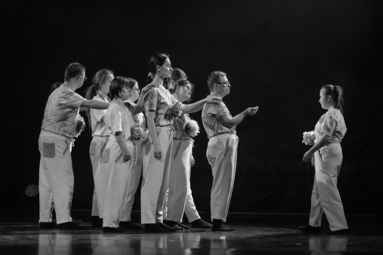 Aktorzy z Teatru Smile – Marta Galant, Małgosia Suskiewicz, Anna Wojtalik, Julia Ścianowska, Aleksandra Bendkowska, Klaudia Woźnicka, Agata Frankiewicz, Mieszko Szymczak, Rafał Bielecki, Łukasz Rosiak – zagrali z pasją. W spektaklu biorą również udział profesjonalne tancerki: Maja Kosowska z Teatru Tańca KIJO oraz Katarzyna Regulska z Teatru V6, które opiekują się na scenie członkami zespołu i czuwają nad prawidłowym przebiegiem sekwencji taneczno-ruchowych. Maja Kosowska współprowadziła również zajęcia teatralno-taneczne na etapie tworzenia spektaklu. Artystki swój warsztat taneczny pokazały w szczególności w wariacjach solowych, łącząc wdzięk z wytrzymałością, precyzję z elegancją. Na scenie tańczyły również w małych grupach z pozostałymi członkami zespołu, koordynując ich ruch.