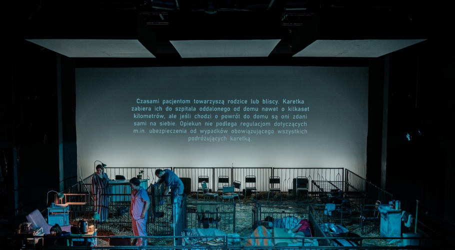 Przykuwającym uwagę chwytem teatralnym są decyzje obsadowe. Nieletnich pacjentów grają aktorzy w wieku średnim i dojrzałym, a personel szpitala i rodziców – aktorzy od nich młodsi. To odwrócenie buduje nowe sensy. Czy gdyby na te oddziały psychiatryczne nie trafiały dzieci, tylko osoby dorosłe, potraktowano by je lepiej? Czy szacunek zależy od wieku? A może nieletni pacjenci oddziałów psychiatrycznych przeszli już tak wiele, że trudnymi doświadczeniami mogliby obdzielić niejedną dojrzałą osobę. Nie bez znaczenia pozostaje cielesność aktorów, obnażana podczas przebierania się czy innych czynności, wykonywanych zawsze w obecności innych, bo na oddziałach prawo do prywatności nie istnieje. Ciała są nieupiększane, niemal bezradne w swojej zwyczajności, naznaczonej przemijaniem.