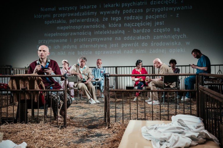 Oczywiście boksy i słoma to teatralna licentia poetica, szkoda, że przedstawiane wydarzenia już nią nie są. Szpital psychiatryczny jawi się jako skrzyżowanie instytucji totalnej z pruską szkołą. Wszyscy pacjenci dostają te same leki, zasadniczo przeznaczone dla osób chorych psychicznie z zaburzeniami zachowania, rodzice często dowiadują się o podawaniu medykamentów już po wdrożeniu leczenia. Tymczasem spora część pacjentów to młodzież w kryzysie. Są wśród nich osoby po próbach samobójczych, ofiary przemocy rówieśniczej, osoby LGBTQ+ czy zmagające się z brakiem akceptacji otoczenia. Na oddziałach brak profesjonalnej terapii grupowej i indywidualnej, lekarze bywają tu rzadko, a jeśli się pojawiają, stosowane przez nich metody leczenia to zadawanie za karę lektur do czytania (tak, „Pana Tadeusza” też) bądź wierszyków do recytowania („Treny” Kochanowskiego). W najlepszym razie „lekarz” zaleca dziecku powtarzanie sobie do lustra „Jestem piękny i wartościowy”, jednocześnie je upokarzając. Zdarza się, że Wiktora, który urodził się jako dziewczynka i przeraźliwie z tego powodu cierpi, marząc o tranzycji, lekarz zachęca do „spróbowania pieszczot z mężczyzną, może coś w nim to obudzi”. Dzieci i młodzież pozostają pod faktyczną opieką pielęgniarek i pielęgniarzy, często przemęczonych, niekompetentnych i z przemocową komunikacją, choć wykazujących ludzkie odruchy. Brak wystarczającej liczby personelu i skutecznego systemu opieki nad dziećmi skutkuje nadużyciami i utrwalaniem traumy zamiast jej leczeniem. Ofiara przemocy w szkole zostaje zgwałcona i gdyby nie stanowcza interwencja matki, nie dostałaby nawet tabletki antykoncepcyjnej. Wiktor znów nazywany jest Wiktorią i wielokrotnie upokarzany. Buntująca się pacjentka nazywana Gwiazdą po raz kolejny dokonuje samookaleczeń. Wiktor (postać autentyczna) w końcu się zabije – po wyjściu ze szpitala.