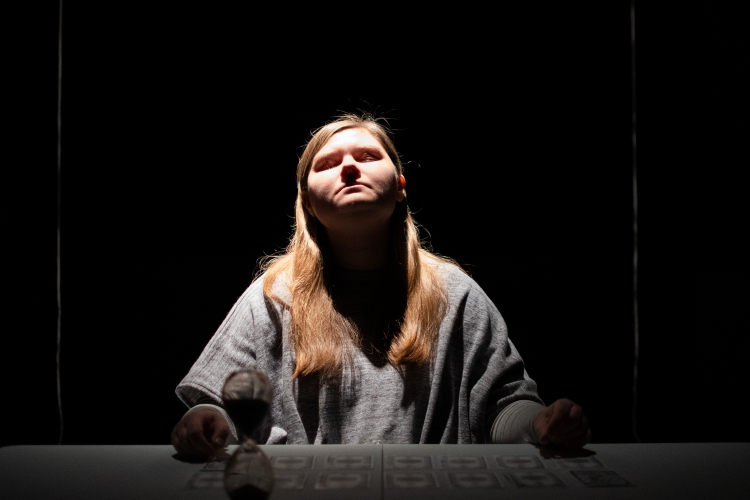 W perfodramie* „Boku” nadziei jest mniej. Minimalistyczna kompozycja sceny kojarzy się z chłodem, bielą i pustką. Króluje na niej Katarzyna Skręt, siedząc za ławką, która może być magicznym stolikiem do odczytywania tarota, stanowiskiem didżeja, wciąż odtwarzającego stare płyty z gramofonu. A na płytach, jak w naszej pamięci, przewijają się te wydarzenia, które zostawiły w nas najwyraźniejsze ślady. Wspomnienia z dzieciństwa, przyjaźnie z młodości. Niektóre leit motivy wciąż powracają i rozchodzą się jak kręgi na wodzie. Takim motywem może być silne uczucie, nagłe odejście bliskiej osoby – na zawsze albo tylko do jutra, ale w takim momencie, że po zamknięciu drzwi zawala się świat i nie sposób już go odbudować z gruzów. Tak z życia bohaterki/narratorki, znika Szczur – przyjaciel z mitologizowanych studenckich czasów. I choć „kontaktuje się” z nią nawet po swojej śmierci, pustki po nim nie udaje się zapełnić. Cała zacinająca się opowieść rozpięta jest pomiędzy trzema kartami tarota – Wisielcem, Arcykapłanką i Śmiercią. Ich wieloznaczna symbolika pozwala na tworzenie nieskończonej liczby połączeń i wersji opowieści, w której może być miejsce zarówno na dramatyczny koniec, jak i na odrodzenie się i nowy początek. Do przemiany jednak nie dochodzi, widzimy proces jeszcze na etapie zamrożenia, niemocy, zastygłego bólu. I jest to obraz bardzo dopracowany wizualnie, dźwiękowo, mocny i przejmujący. Statyka kompozycji, ograniczona ekspresja ruchowa aktorki początkowo drażnią, stopniowo jednak wciągają w swój specyficzny, hipnotyczny rytm czytanej bądź odsłuchiwanej opowieści.