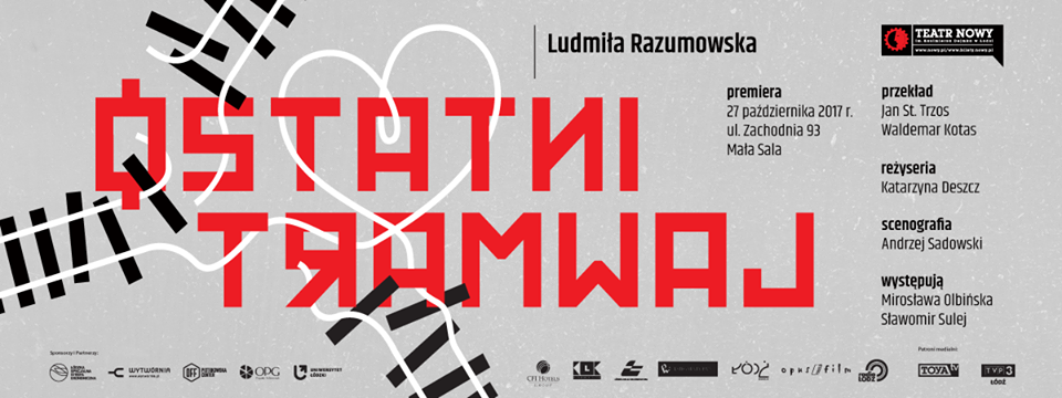 Już w piątek 27 października Teatr Nowy im. K. Dejmka w Łodzi zaprosi na drugą premierę tego sezonu. Będzie to „Ostatni tramwaj” Ludmiły Razumowskiej, kameralna opowieść o uczuciu (nie)możliwym. Zagrają Mirosława Olbińska i Sławomir Sulej, reżyseruje Katarzyna Deszcz, scenografię przygotował Andrzej Sadowski.