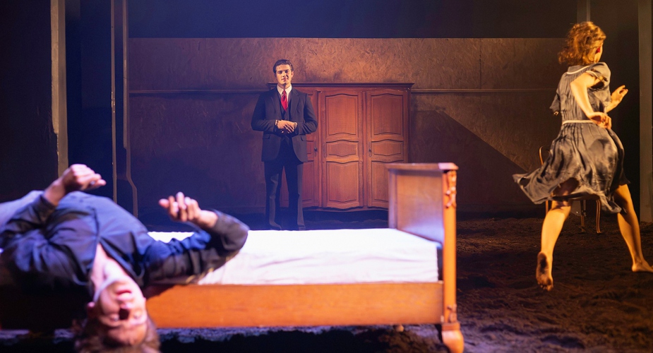 Tadeusz Różewicz „Pułapka”, reżyseria: Adam Orzechowski, kostiumy, scenografia, światło: Magdalena Gajewska, muzyka: Marcin Nenko. Teatr Studyjny w Łodzi, premiera 10 października 2025.