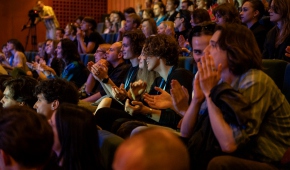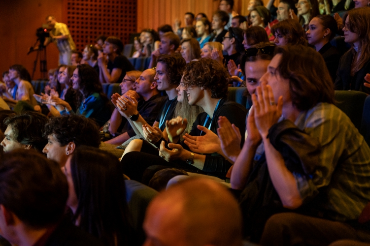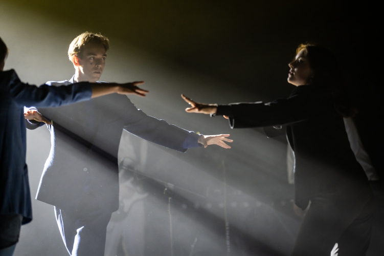 Pierwszego dnia FST zobaczyliśmy dwa spektakle: „Hamleta” z PWSFTViT w Łodzi i „Pierwsze razy” z Akademii Sztuk Teatralnych w Krakowie Filia we Wrocławiu. Szekspira wyreżyserował Marcin Gorczyński. Jak na spektakl dyplomowy przystało, dano szansę wszystkim aktorom – Hamlet jest grany przez ośmioro wykonawców, czyli wszystkich występujących w przedstawieniu: Marię Chojnacką, Dorotę Goljasz, Szantal Strzelińską, Maksymiliana Hojkę, Jana Jakubika, Jakuba Kondrata, Konrada Krupińskiego i Jakuba Santarosę.
