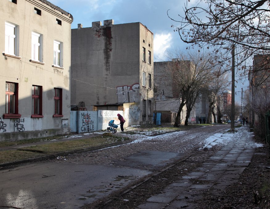 Rzędy drewnianych domów, które dawniej tam stały, miały swój urok. Kamienice starzały się tak brzydko. To, co z nich zostało, to brud i bieda, bieda, która nie miała tu swoich zaprzeczeń. Ona ujednoliciła styl, doprowadziła do dewastacji. Jak niewidzialny rodzic, wychowywała wielu z nas. Kiedy myślimy, że istnieją systemy wartości lub czytelne hierarchie, które jawnie wskazują, co robić, a czego unikać, mamy szczęście, ale i wiele snu w sobie. W latach siedemdziesiątych i osiemdziesiątych ubiegłego stulecia w tej dzielnicy dawnego porządku i głębszego sensu nie istniał już żaden powód dla uwyraźnienia jakiejkolwiek uświadomionej powinności. Bylejakość wszystkiego stanowiła działającą jak instynkt, wszechmogącą formę, której podlegał każdy.