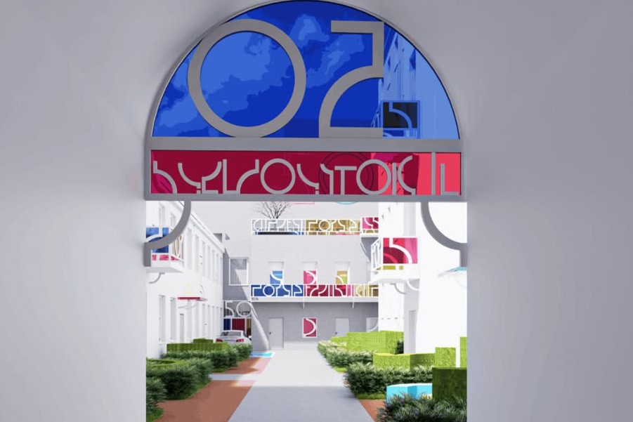 Wygląd podwórka zaprojektowali studenci Akademii Sztuk Pięknych w Łodzi. Inspiracją był alfabet Władysława Strzemińskiego. Remont kamienicy przy ul. Piotrkowskiej 50 zostanie zrealizowany dzięki wsparciu Urzędu Marszałkowskiego Województwa Łódzkiego.