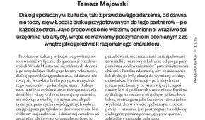 Dialog społeczny w kulturze, taki z prawdziwego zdarzenia, od dawna nie toczy się w Łodzi z braku przygotowanych do tego partnerów – po każdej ze stron. Jako środowisko nie widzimy odmiennej wrażliwości urzędnika lub artysty, wręcz odmawiamy poczynaniom ocenianym z zewnątrz jakiegokolwiek racjonalnego charakteru.