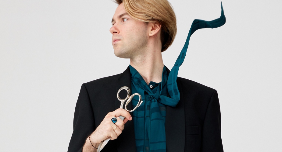 Po inne inspiracje sięga Robert Geserick, który w kolekcji „Buntprächtigerlebensverlauf” odwołuje się do własnych berlińskich wspomnień i barwnego świata popkultury. W konkursie prezentuje sylwetki męskie, wyróżniające się drukami transferowymi czy przestrzennymi splotami dziewiarskimi.