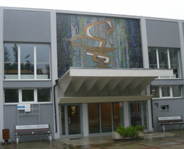 ścianie gmachu Wydziału Farmacji przy ulicy Muszyńskiego.