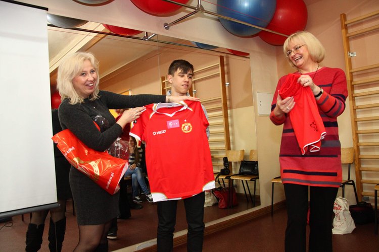 torbę z pamiątkami łódzkiego Widzewa. Prezent wręczyła chłopcu