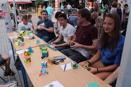 młodzież układała kostkę Rubika i grała w gry planszowe, był też