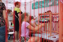małych krosnach ćwiczono tkanie gobelinów, dzieci rysowały, a