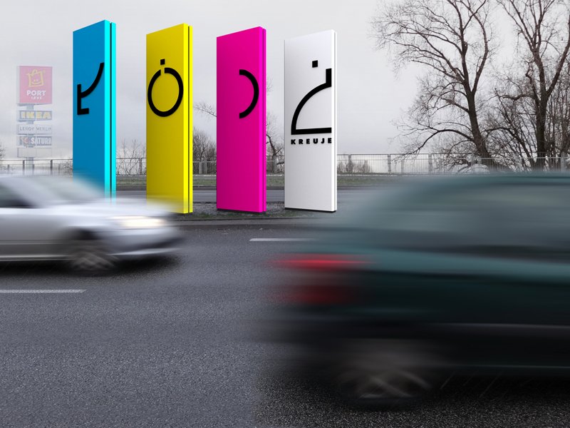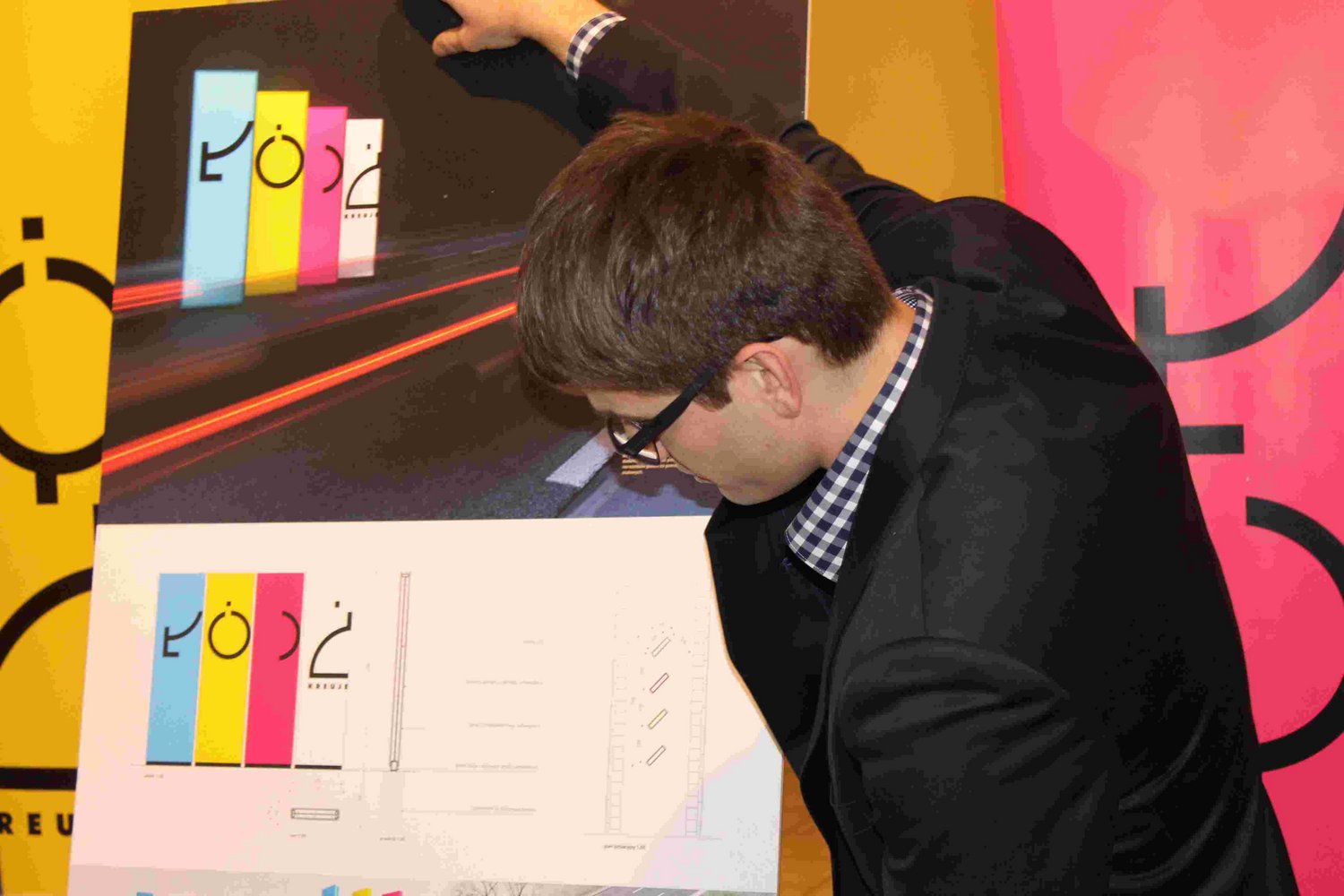 znaku, który zostanie ustawiony przy drogach wjazdowych do Łodzi. Autorem zwycięskiej pracy w konkursie Urzędu Miasta Łodzi, jest Karol Murlak z Warszawy.