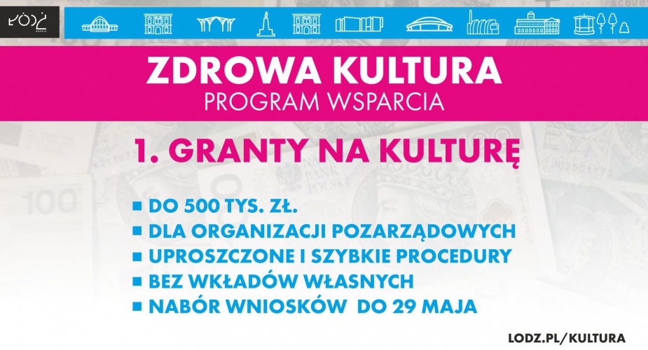 Operatorem programu grantowego jest Wydział Kultury UMŁ, który na ten cel przeznaczył pół miliona złotych. Wsparcie kierowane jest do organizacji pozarządowych realizujących projekty artystyczne w takich dziedzinach jak: muzyka, literatura, film, sztuki performatywne, sztuki wizualne czy taniec. Organizacje będą zobligowane do angażowania w swoje działania łódzkich artystów. Nabór do programu rozpoczyna się 20 kwietnia i trwa do 29 maja. Projekty będą mogły być realizowane do końca roku. A sama procedura naboru będzie na wyjątkowych zasadach. - Upraszczamy procedury, zwalniamy z wkładów własnych, wnioskodawca nie będzie miał też obowiązku dostarczenia rekomendacji – mówi Małgorzata Moskwa-Wodnicka, wiceprezydent Łodzi odpowiedzialna za kulturę.Wnioski można składać za pomocą formularza zamieszczonego na stronie: https://uml.lodz.pl/kultura/wsparcie-kultury/