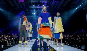 Tanya Tur z Białorusi wspaniale zainspirowała się chłopskimi ubiorami ze swojego kraju. Katarzyna Dworecka z Krakowa przygotowała niezwykle sympatyczną, barwną kolekcję jak dla bohaterów bajki dla dzieci. No i ona – Laima Jurča z łotewskiej Rygi. Jak powiedziała prezydent Łodzi Hanna Zdanowska podczas wręczania jej głównej nagrody Łódź Young Fashion: zwycięzca mógł być tylko jeden. Dokładnie tak. Kolekcja Laimy zrobiła wrażenie chyba na wszystkich: kobiety w osłaniających każdy milimetr ciała, łącznie z twarzą, kostiumach w niebanalne, bardzo kolorowe wzory. Niezwykłe!
