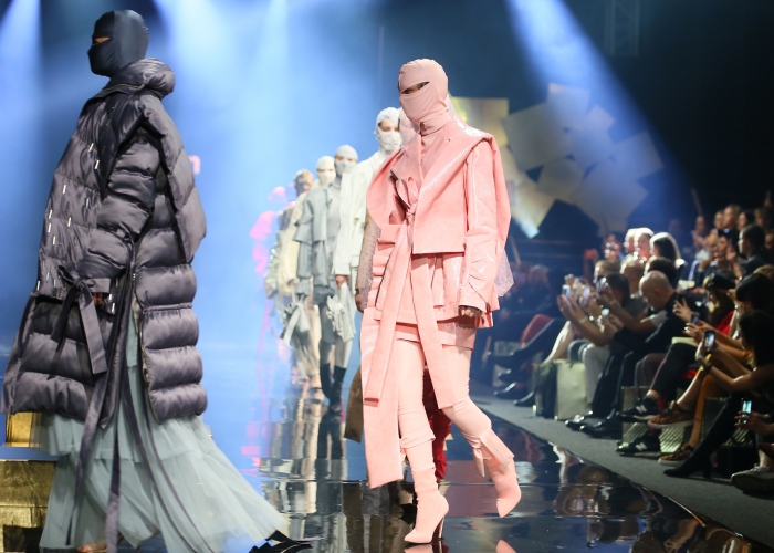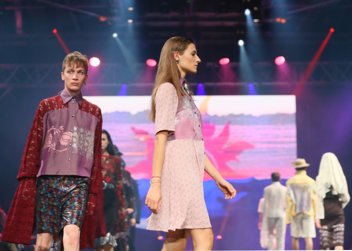Na poprzednich galach brakowało mi trochę ubiorów zmieniających sylwetkę człowieka, pozwalających sobie na igranie z ciałem. Tutaj się doczekałam. Riddhi Vora z Indii podoczepiała do strojów dodatkowe nogi, ręce, same dłonie albo stopy, piersi umieściła na poduszkach, a te np. w okolicach lędźwi. Co za szalony pomysł! Takich cudownych wariactw było więcej. Trudno mi było przestać się uśmiechać podczas prezentacji kolekcji dla mężczyzn Emilie Thirion z Belgii – bardzo rozbudowane barki w marynarkach, podniesione do góry tak, że całkowicie ukrywają szyję, a do tego kryzy sprawiały, że modele przypominali przebranego na bal Quasimodo.