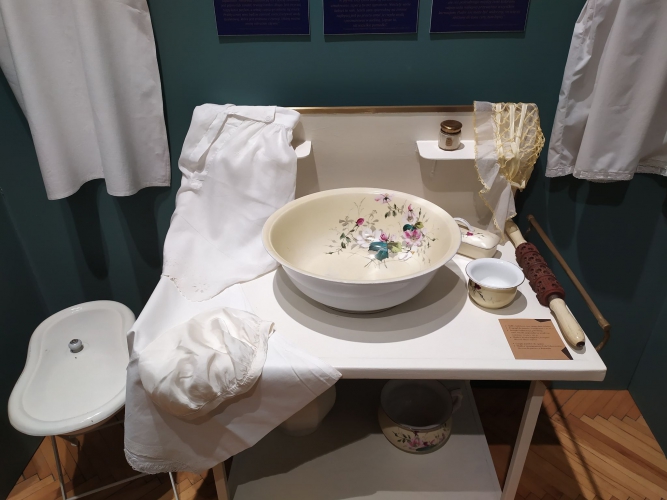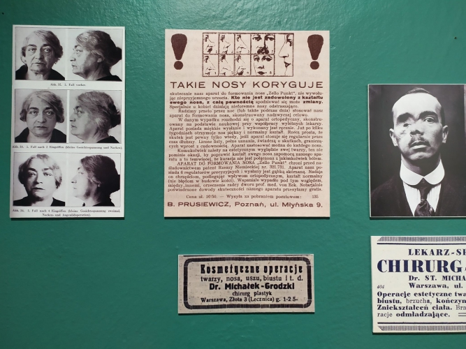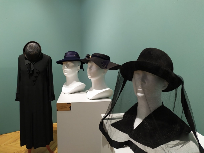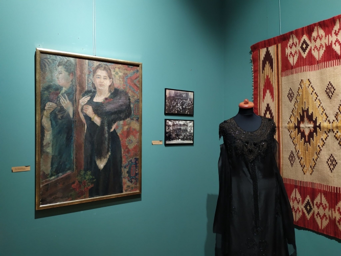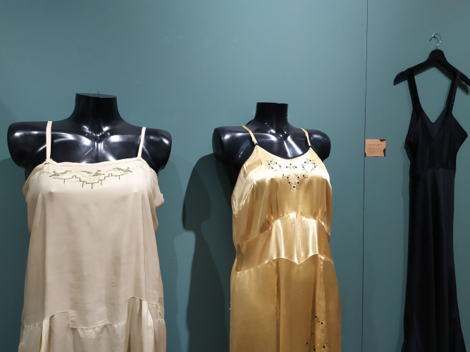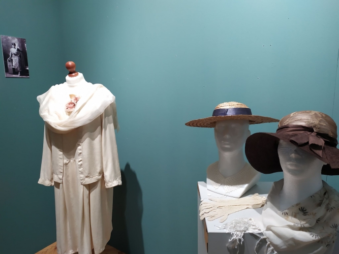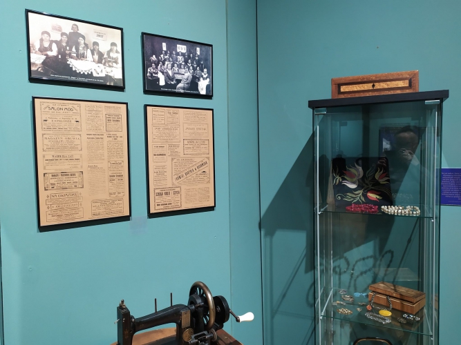 Dodatkową atrakcją są fotografie ślubne, czasopisma kobiece, okładki przedwojennego tygodnika „Na szerokim świecie” i rozmaitości: szkatułki, futerały na wachlarze, jedwabne chusteczki. Wyróżniają się zaprojektowane z kunsztem suknie: wizytowa czarna z wyszywanymi elementami, czarna wieczorowa wyszywana koralikami, dwuczęściowa letnia w odcieniu jasnego beżu z bladoróżowymi kwiatami.