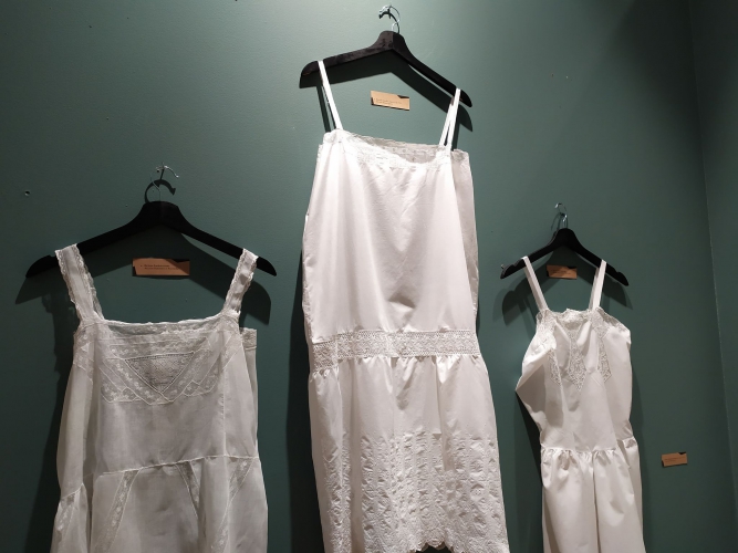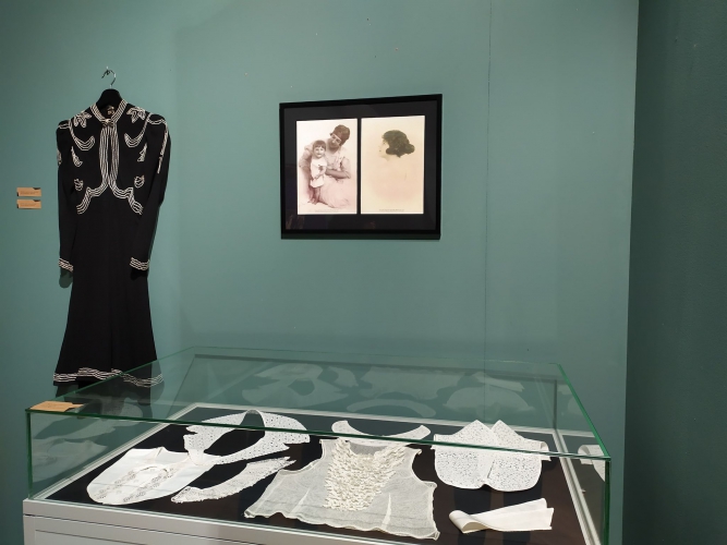 Najcenniejsze eksponaty umieszczono w szklanych gablotach. To m.in. kołnierzyki i mankiety do bluzek, koralikowane kołnierzyki, torebki, pierścionki, kolczyki, naszyjniki, klipsy.