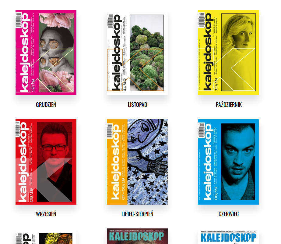 W formacie PDF dostępne są numery Kalejdoskopu, wydawane już w nowym layoucie autorstwa Jakuba Stępnia, dzięki partnerstwu "K" z Monopolis, czyli numery: 05-12/2019 oraz 01/2020. Numer aktualny "K" 03/2020 pozostaje w dystrybucji. Tematy udostępnionych numerów: