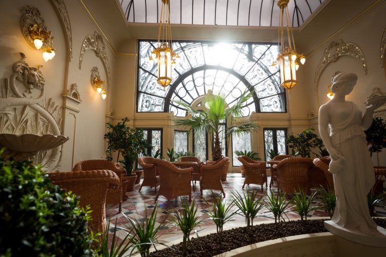 Dodatkową atrakcję stanowi fakt, że pałac zagrał w wielu serialach i filmach (w tym w „Ziemi obiecanej”). Trafił więc w tym roku do grona miejsc składających się na Szlak Miasta Filmowego UNESCO. Oprowadzanie obejmuje wstęp do najbardziej reprezentacyjnych wnętrz, m.in. sali balowej, ogrodu zimowego, jadalni paradnych, klatki schodowej z oryginalnym witrażem oraz sali bilardowej z palarnią. Udział w wycieczce jest możliwy tylko po wcześniejszym zgłoszeniu. Koszt wstępu to 15 zł.Pałac wybudowany według projektu Adolfa Zelingsona w latach 1904-08 ma charakter eklektyczny: łączy dominujące w jej architekturze elementy włoskiego renesansu i baroku z motywami secesyjnymi. Został zaprojektowany jako budynek jednopiętrowy, z wysokimi suterenami i mieszkalnym poddaszem. Składa się z dwóch skrzydeł bocznych i części frontowej, w której na obu kondygnacjach znajdowały się pomieszczenia reprezentacyjne: salony i jadalnie (dziś sale koncertowe i wykładowe), przeszklone halle, gabinety, buduary, pokój bilardowy. Na piętrze usytuowany został ogród zimowy przykryty efektownym szklanym dachem, widocznym od strony ogrodu zewnętrznego. Pełne przepychu wnętrza zachowały do dziś wiele ze swej świetności: boazerie z różnogatunkowego drewna, stiukowe sufity, sztukatorskie dekoracje, witraże, marmurowe kominki, żyrandole. Uwagę przyciąga też wewnętrzna klatka schodowa wyłożona ciemnym marmurem z wachlarzowymi schodami z kutą balustradą. Klatkę zdobi piękny witraż z warsztatu mistrza Richarda Schleina z Żytawy.