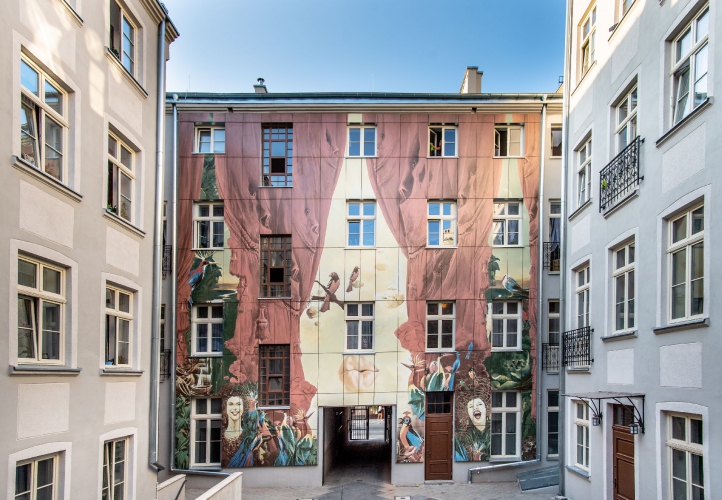 To kolejne tego typu podwórko w Łodzi - po po Pasażu Róży Joanny Rajkowskiej przy Piotrkowskiej 3 i "Sąsiadach" Isaaka Cordala przy ul. Traugutta. Obrazy, Siudmaka, polskiego malarza mieszkającego na stałe we Francji, do których nawiązują elewacje, to „Narodziny Dnia” i „Ptaki w Raju” w duchu realizmu fantastycznego. Instalacja zajmuje powierzchnię 350 m.kw. Do wykonania malowideł zużyto 260 supernowoczesnych płyt gresowych, z których największa mierzy 2 metry, a najmniejsza 25 centymetrów. Konstrukcja ma być odporna na skrajne temperatury czy ulewne deszcze i przetrwać dziesiątki lat w niezmienionej formie.- Myślę, że obecność państwa na otwarciu świadczy o tym, że takie przestrzenie nam się podobają. To przykład prawdziwej rewitalizacji. Daliśmy lepsze warunki życia mieszkańcom kamienicy, ale i niesamowitą atmosferę tej przestrzeni - mówiła prezydent Hanna Zdanowska. - Mam nadzieję, że będziemy się tu spotykać na różnych wydarzeniach. Nam wszystkim życzę, by to podwórko stało się miejscem kultowym.