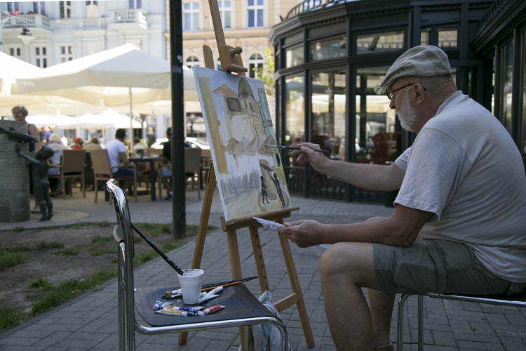 Warsztaty malarskie i fotograficzne w pasażu Rubinsteina były częścią uroczystej inauguracji cyklu półkolonii dla seniorów organizowanego przez Łódzki Dom Kultury. W warsztatach wzięło udział około 20 osób z Tomaszowa Mazowieckiego, Aleksandrowa Łódzkiego, Konstantynowa Łódzkiego, Skierniewic, Zduńskiej Woli i Piotrkowa Trybunalskiego.