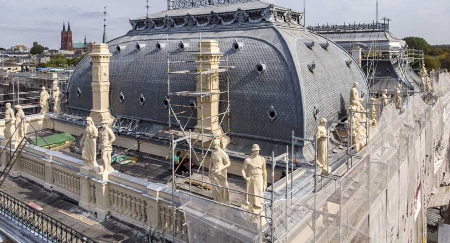 Trwa także m.in. remont kopuł na dachu pałacu. Część z nich była w tak złym stanie, że wymagała położenia nowej blachy. Teraz poddawana jest patynowaniu. Pozostałe oryginalne fragmenty udało się odrestaurować.