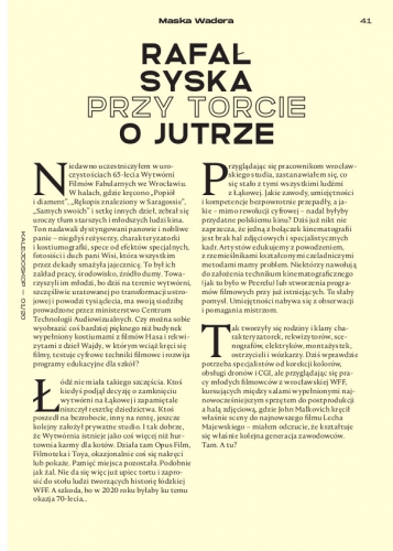 Ton nadawali dystyngowani panowie i nobliwe panie – niegdyś reżyserzy, charakteryzatorki i kostiumografki, spece od efektów specjalnych, fotosiści i duch pani Wisi, która wszystkim przez dekady smażyła jajecznicę. To był ich zakład pracy, środowisko, źródło dumy. Towarzyszyli im młodzi, bo dziś na terenie wytwórni, szczęśliwie uratowanej po transformacji ustrojowej i powodzi tysiąclecia, ma swoją siedzibę prowadzone przez ministerstwo Centrum Technologii Audiowizualnych. Czy można sobie wyobrazić coś bardziej pięknego niż budynek wypełniony kostiumami z filmów Hasa i rekwizytami z dzieł Wajdy, w którym wciąż kręci się filmy, testuje cyfrowe techniki filmowe i rozwija programy edukacyjne dla szkół.Łódź nie miała takiego szczęścia. Ktoś kiedyś podjął decyzję o zamknięciu wytwórni na Łąkowej i zapamiętale niszczył resztkę dziedzictwa. Ktoś poszedł na bezrobocie, inny na rentę, jeszcze kolejny założył prywatne studio. I tak dobrze, że Wytwórnia istnieje jako coś więcej niż hurtownia karmy dla kotów. Działa tam Opus Film, Filmoteka i Toya, okazjonalnie coś się nakręci lub pokaże. Pamięć miejsca pozostała. Podobnie jak żal. Nie da się więc już upiec tortu i zaprosić do stołu ludzi tworzących historię łódzkiej WFF. A szkoda, bo w 2020 roku byłaby ku temu okazja 70-lecia…
