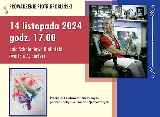 Podczas spotkania będzie możliwość zakupu katalogu „Obrazy z podróży”. Można będzie zobaczyć 11 obrazów namalowanych podczas podróży po Stanach Zjednoczonych. Wstęp wolny.