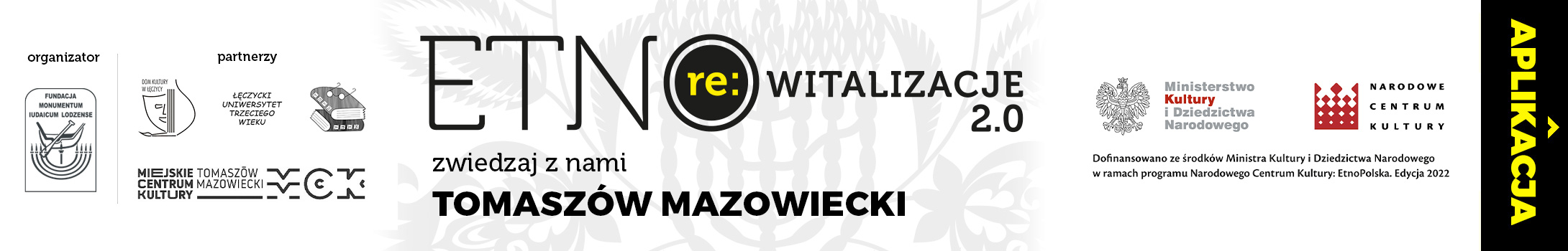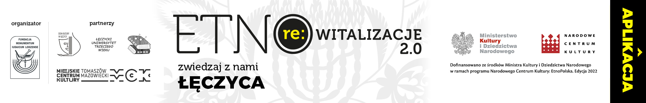 Projekt „ETNO re:WITALIZACJE 2.0” zrealizowany przez Fundację Monumentum Iudaicum Lodzense zrealizowano przy dofinansowaniu ze środków Ministra Kultury i Dziedzictwa Narodowego za pośrednictwem Narodowego Centrum Kultury w ramach programu: EtnoPolska. Edycja 2022.